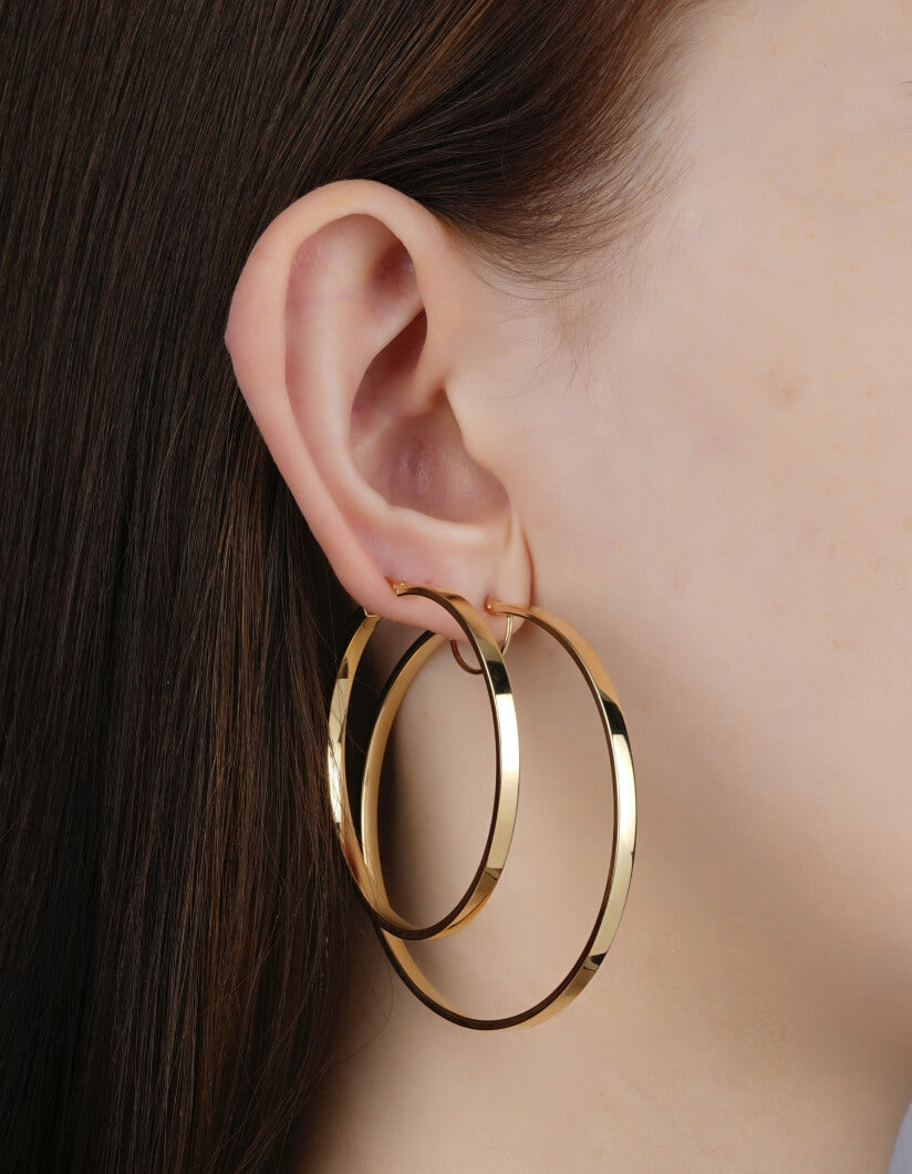 Polished Rhodium Plated Thick Hoop Earrings in Sterling Silver (4x20mm)