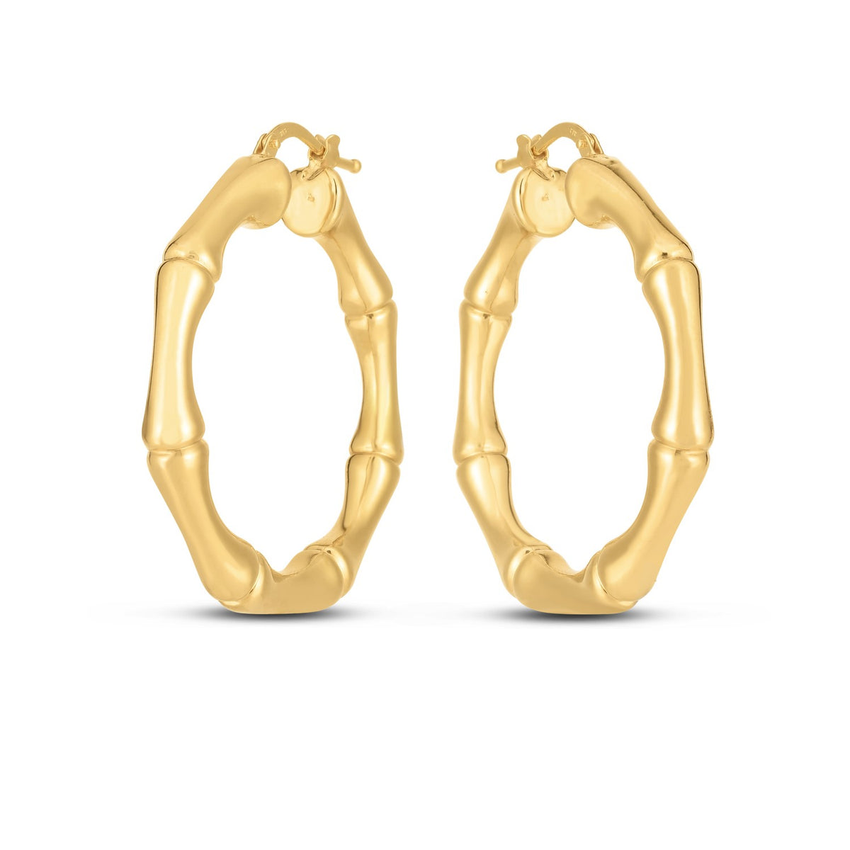 14k Yellow Gold Large Bamboo Hoops (35mm)