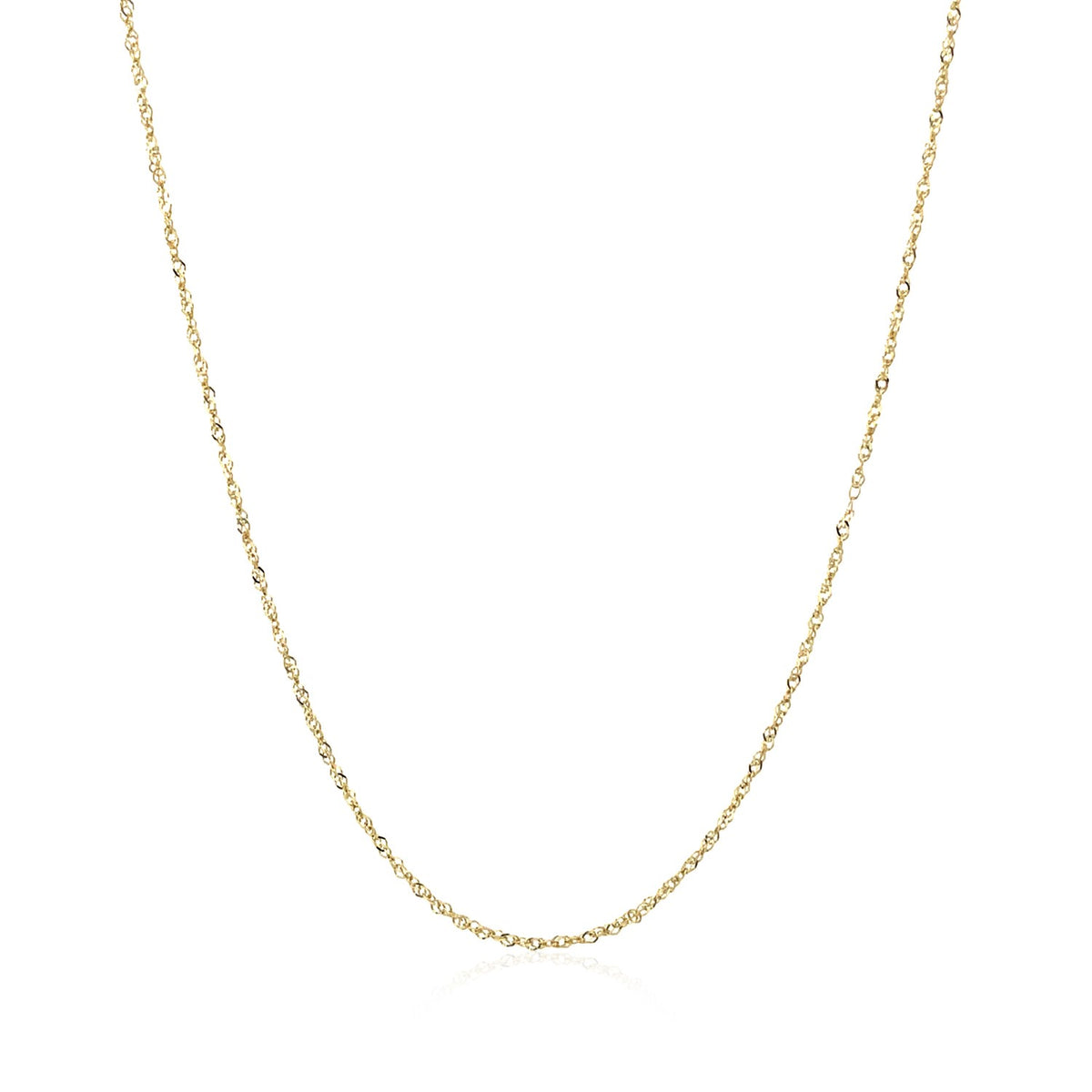 This Singapore chain comes in 10k yellow gold and has a width of 0.80 millimeters.
