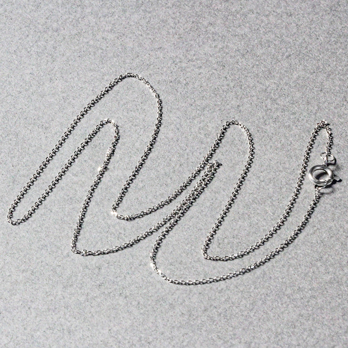 This diamond cut cable link chain comes in 14k white gold and has a width of 0.68 millimeters.