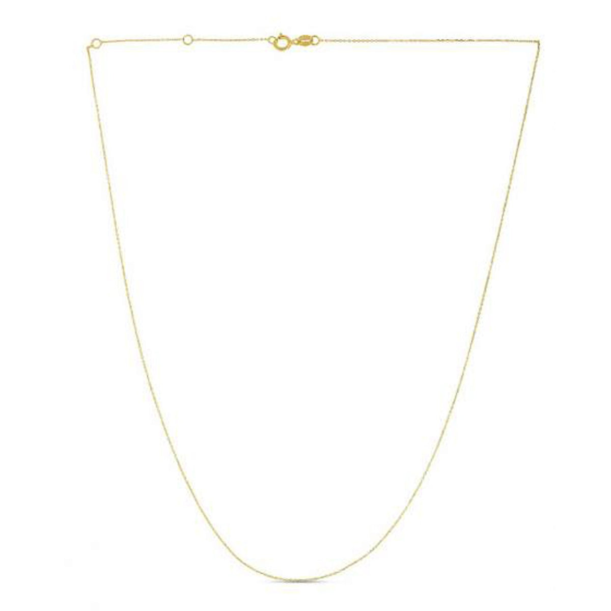 Double extendable diamond cut cable chain crafted in 14k yellow gold measuring 0.87 millimeters in width. Extendable 16 to 18 inches in length and secured with a spring ring clasp.