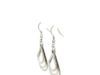 Sterling Silver Textured Graduated Open Teardrop Dangling Style Earrings