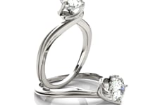 A gorgeous bypass style round cut diamond solitaire ring with a prong setting. Designed in 14k white gold.