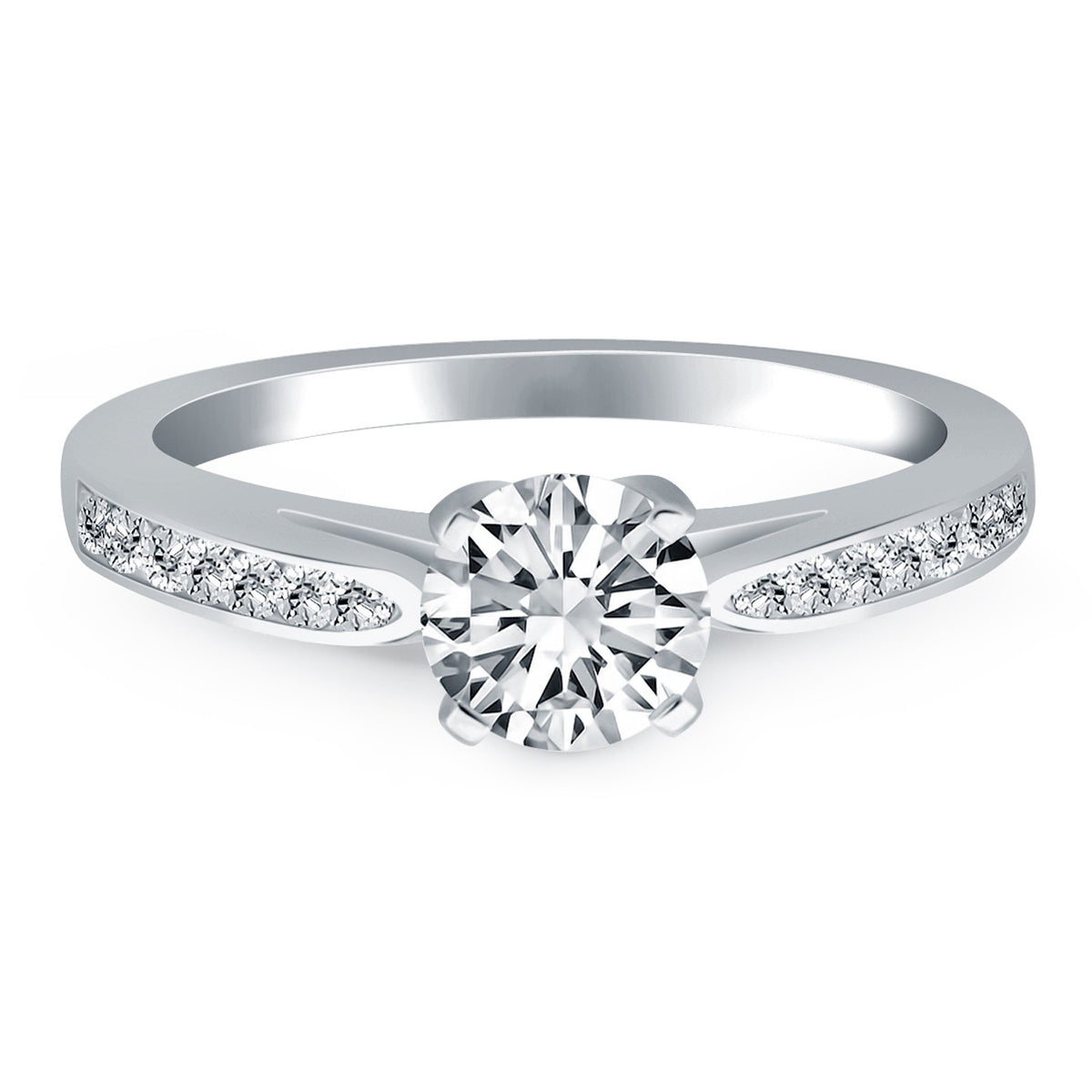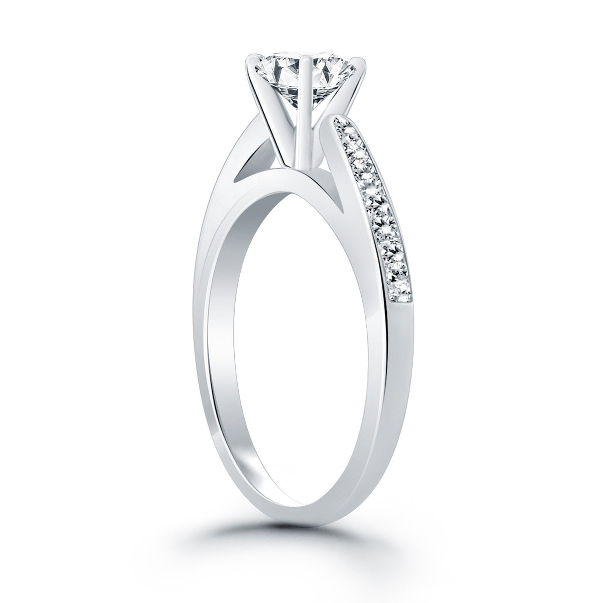 14k White Gold Cathedral Engagement Ring Mounting with Pave Diamonds