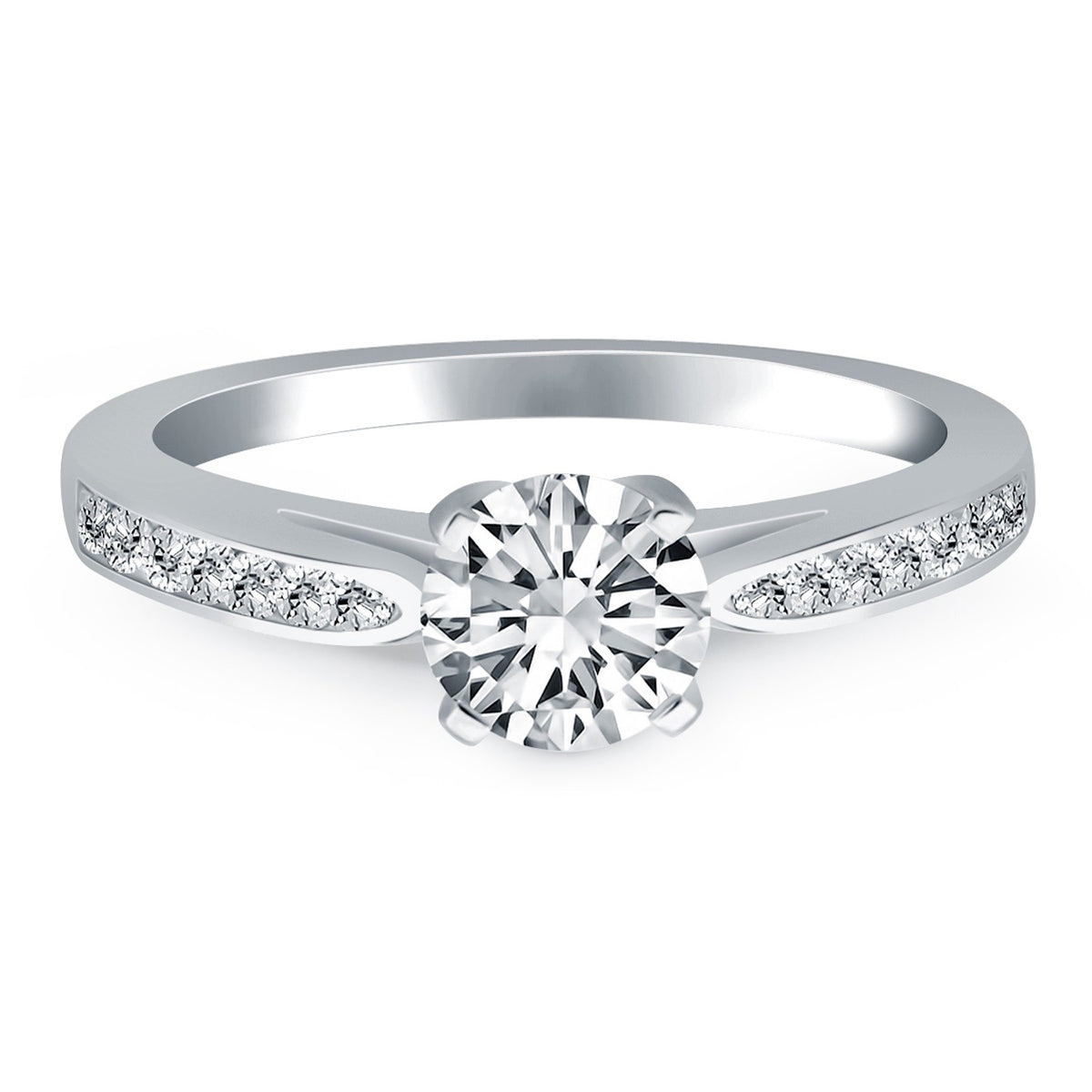 14k White Gold Cathedral Engagement Ring with Pave Diamonds