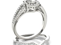 14k White Gold Diamond Engagement Ring with Hexagon Halo Border (7/8 cttw)