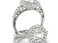 14k White Gold Diamond with Two-Row Pave Border Engagement Ring (2 cttw)