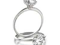 A simple and sophisticated round cut engagement ring with prong setting diamond detailing. Utterly elegant and designed in 14k white gold.