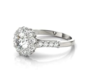 Utterly enthralling, this halo diamond engagement ring features a 1 1/2 carat center diamond wonderfully crafted in 14k white gold.