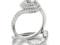 Positively alluring, this round cut diamond engagement ring features an exquisitely designed spiral style border with pave set stones. An enchanting beauty crafted in 14k white gold.