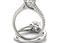 Delicately simple and elegant, this round diamond ring features a split shank with smaller stones made of 14k white gold.