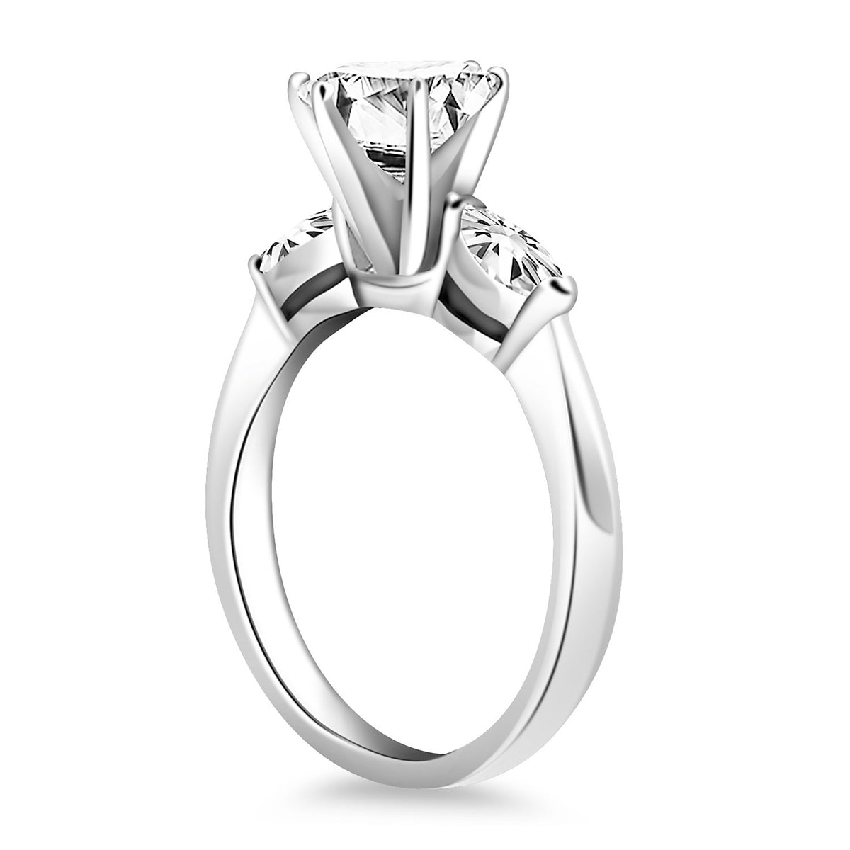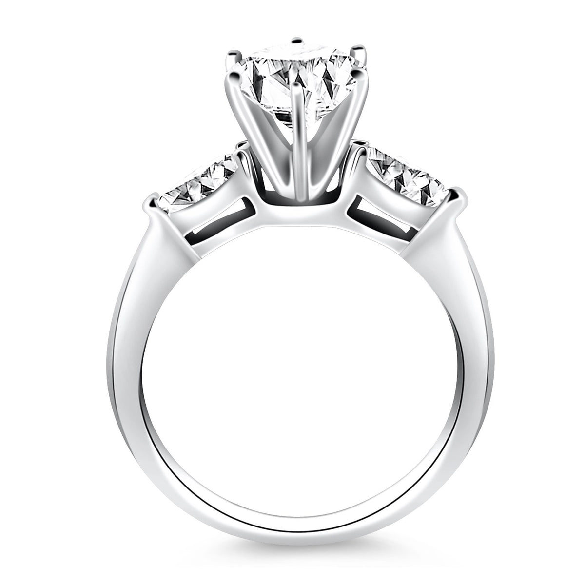 14k White Gold Three Stone Engagement Ring Mounting with Marquise Side Diamonds