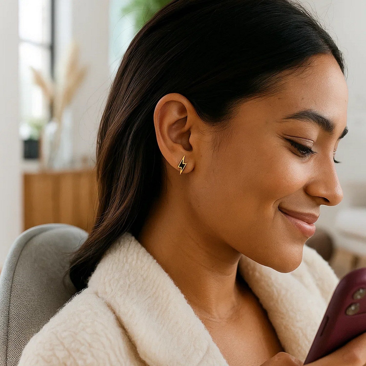 14k Yellow Gold and Enamel Black Lightning Bolt Stud Earrings