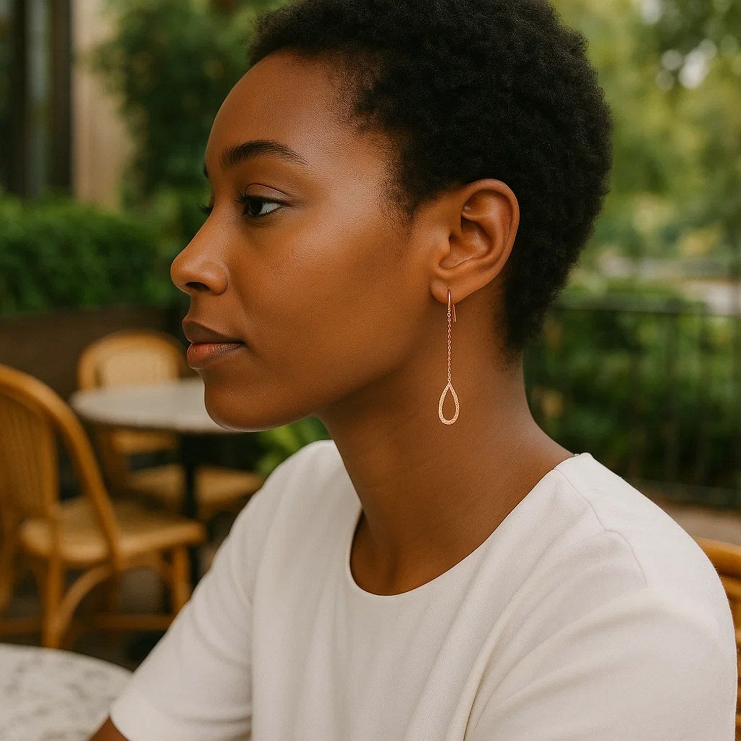 Textured Pear Shaped Long Drop Earrings in 14k Rose Gold