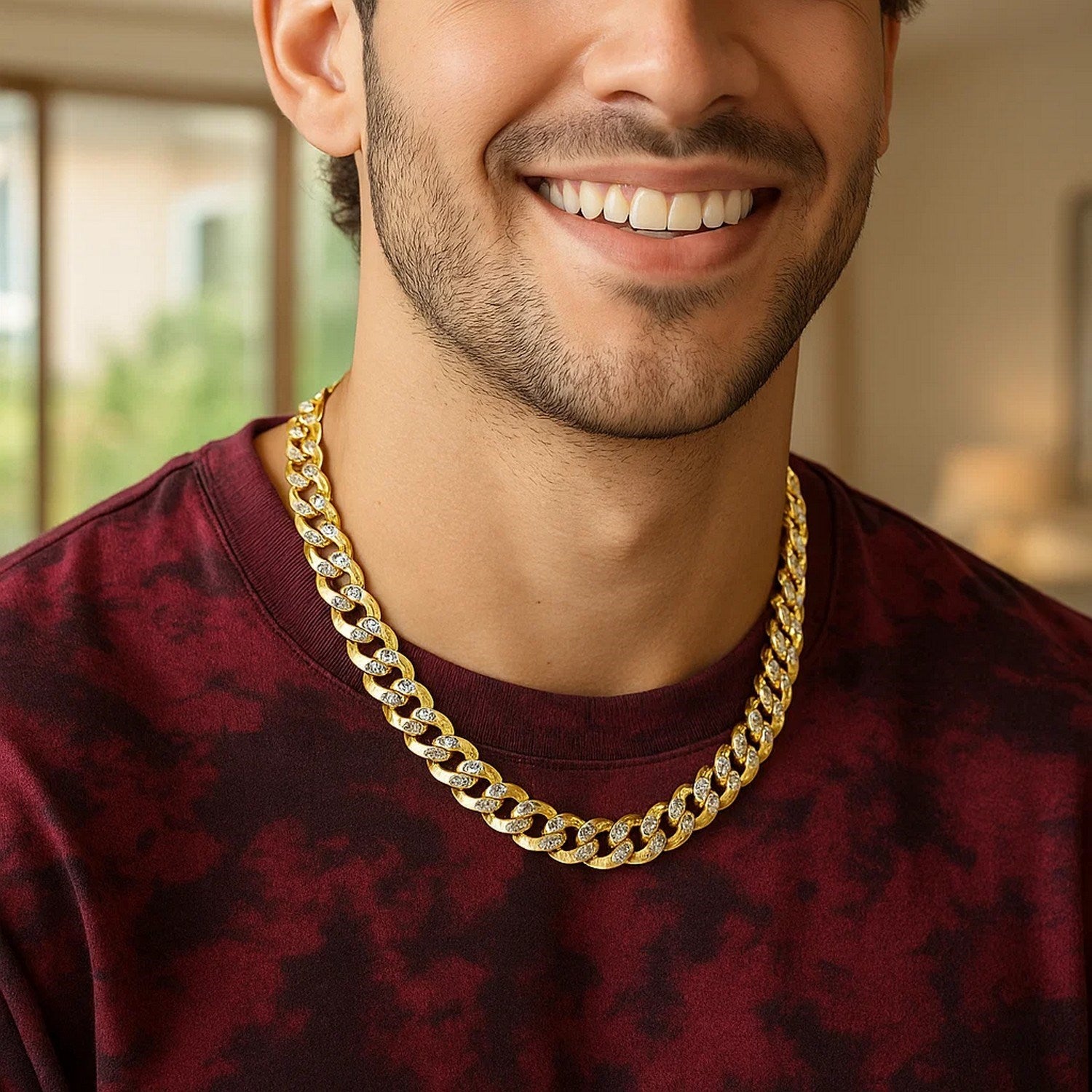 10 mm 14k Two Tone Gold Pave Curb Chain (9.70 mm)