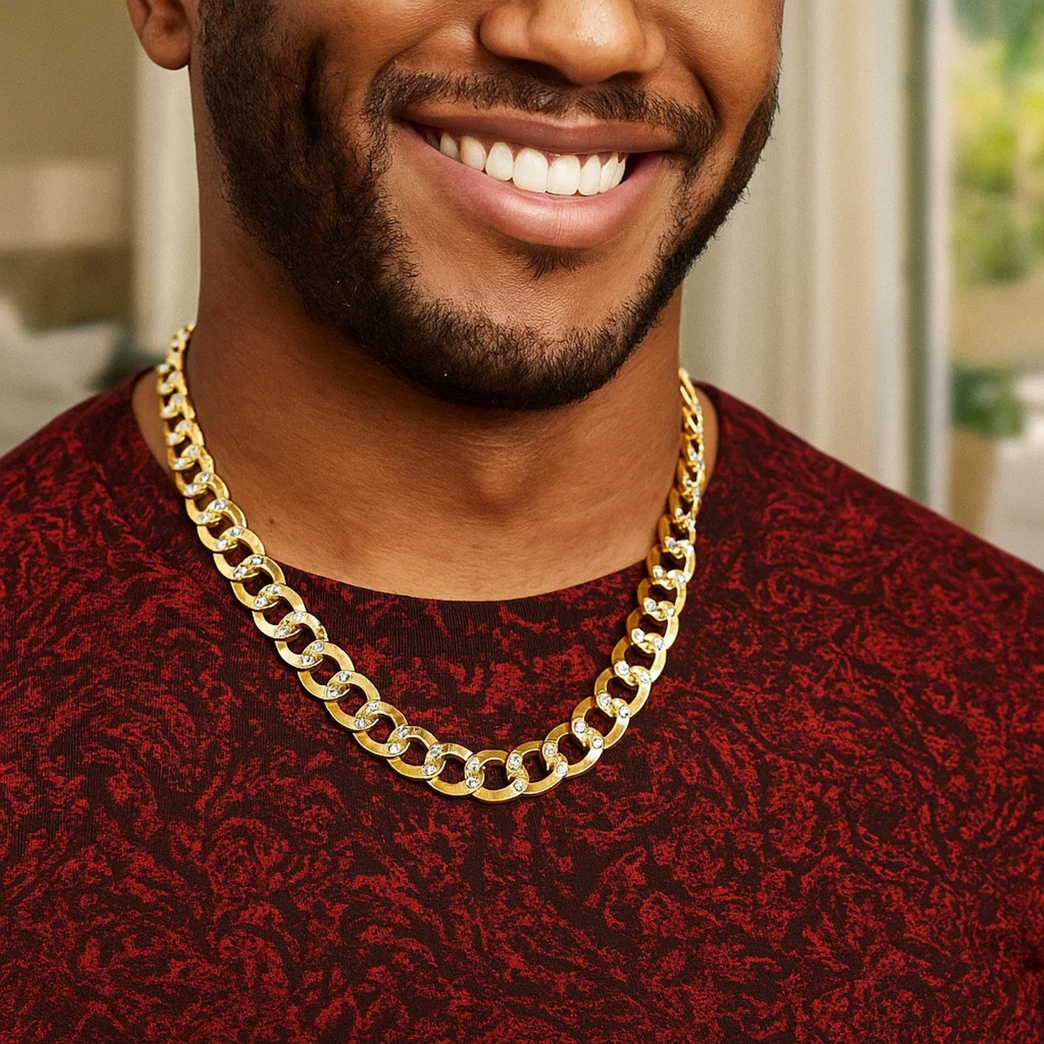 14k Two Tone Gold Pave Curb Chain (11.23 mm)