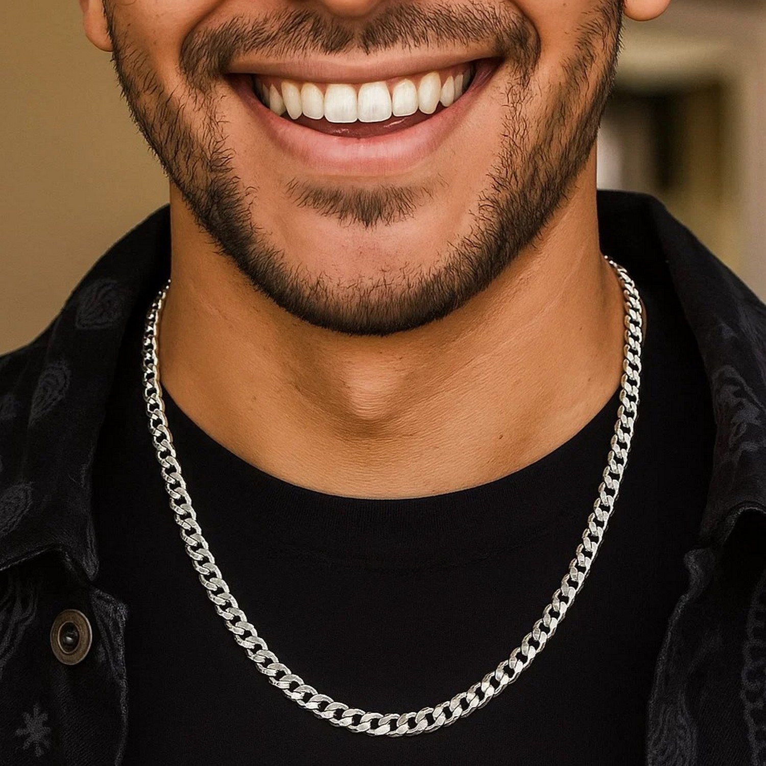 This solid curb chain comes in 14k white gold and has a width of 5.70 millimeters.