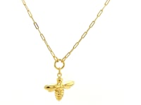 A dazzling 14K yellow gold bee frolics and buzzes as it hangs from a lovely chain necklace. Necklace is 18 inches long and 1.5mm wide. Pendant measures 22.7x17.9mm.