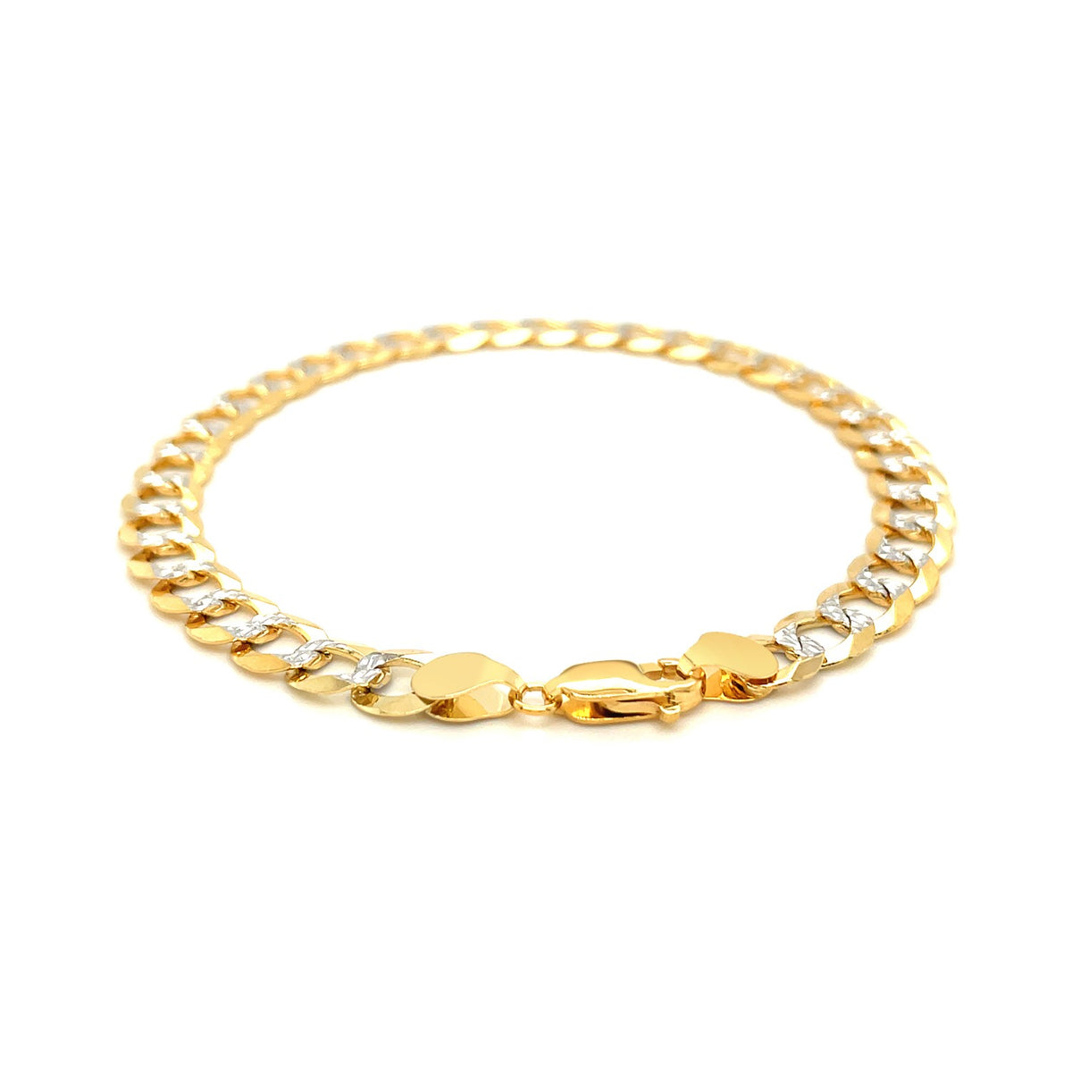 7.0mm 14k Two Tone Gold Pave Curb Bracelet