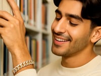 Sparkling white pave texture adds light and sparkling color to this exquisite 14k two-toned gold bracelet. Bracelet is 8 1/2 inches long, 11.5mm wide, and closes with a box clasp.