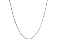 This classic box chain comes in 14k white gold and has a width of 0.68 millimeters.