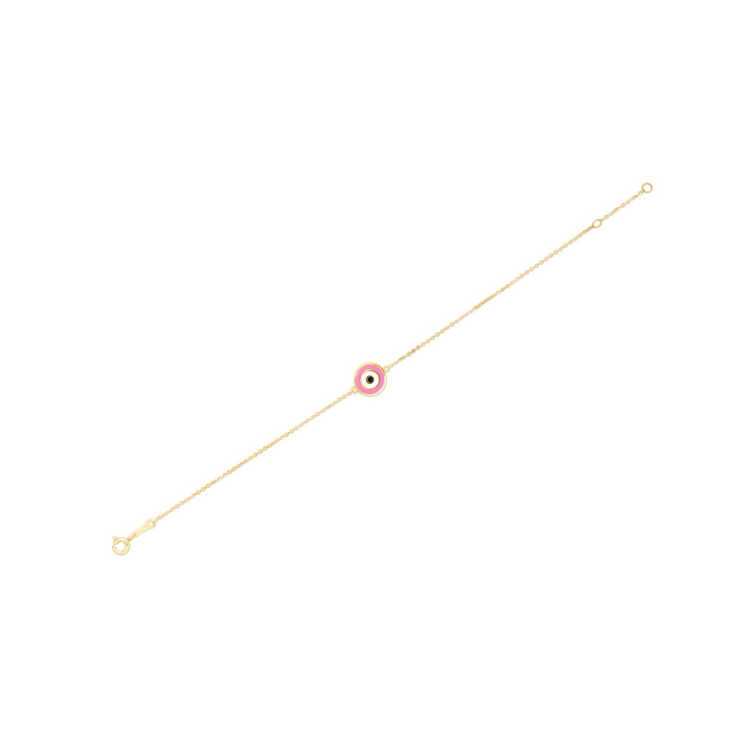 14k Yellow Gold Pink Evil Eye Bracelet (1.00 mm)