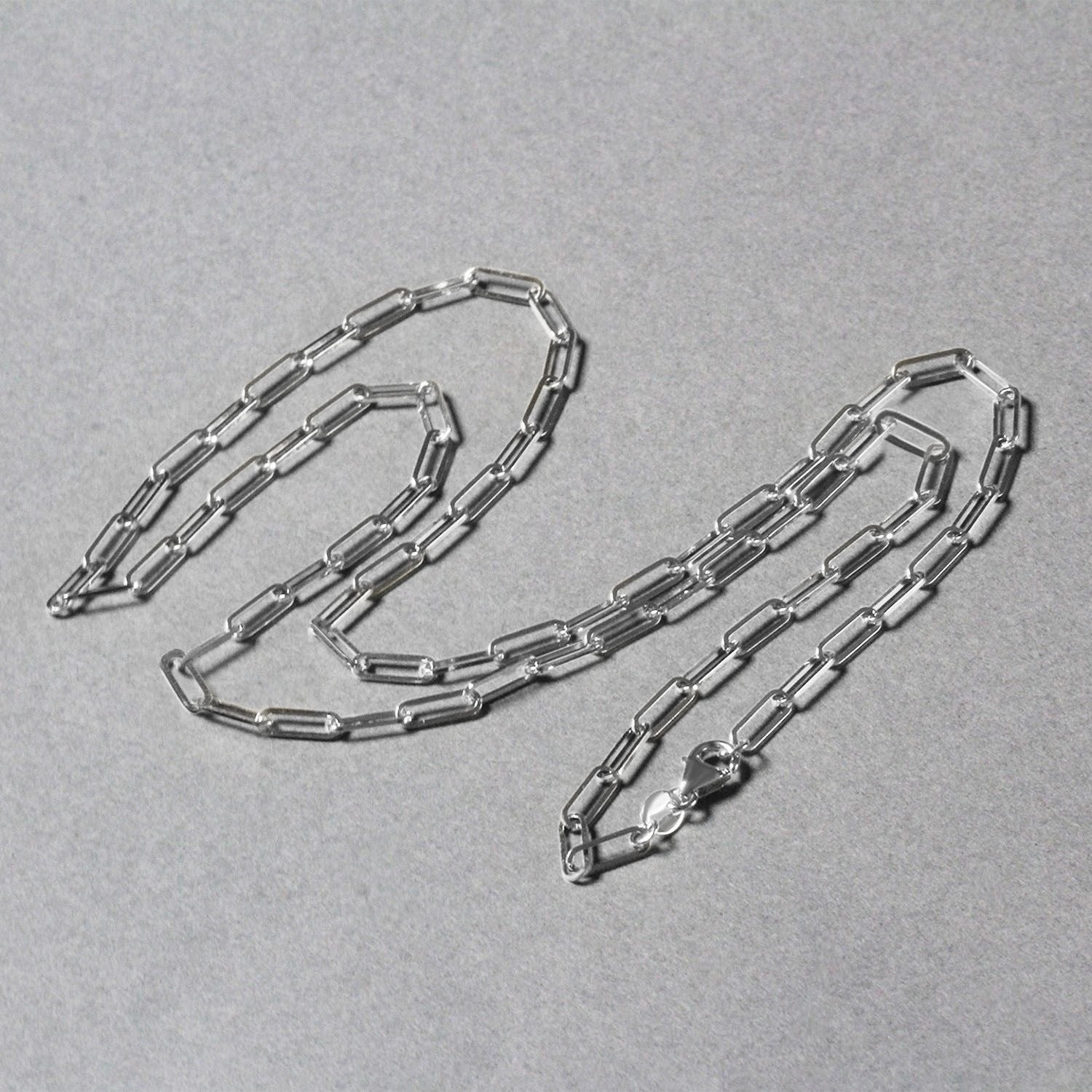Bright 18K white gold is the star of this exquisite contemporary paperclip chain. Chain has 2.50 mm wide links and closes with a lobster clasp.
