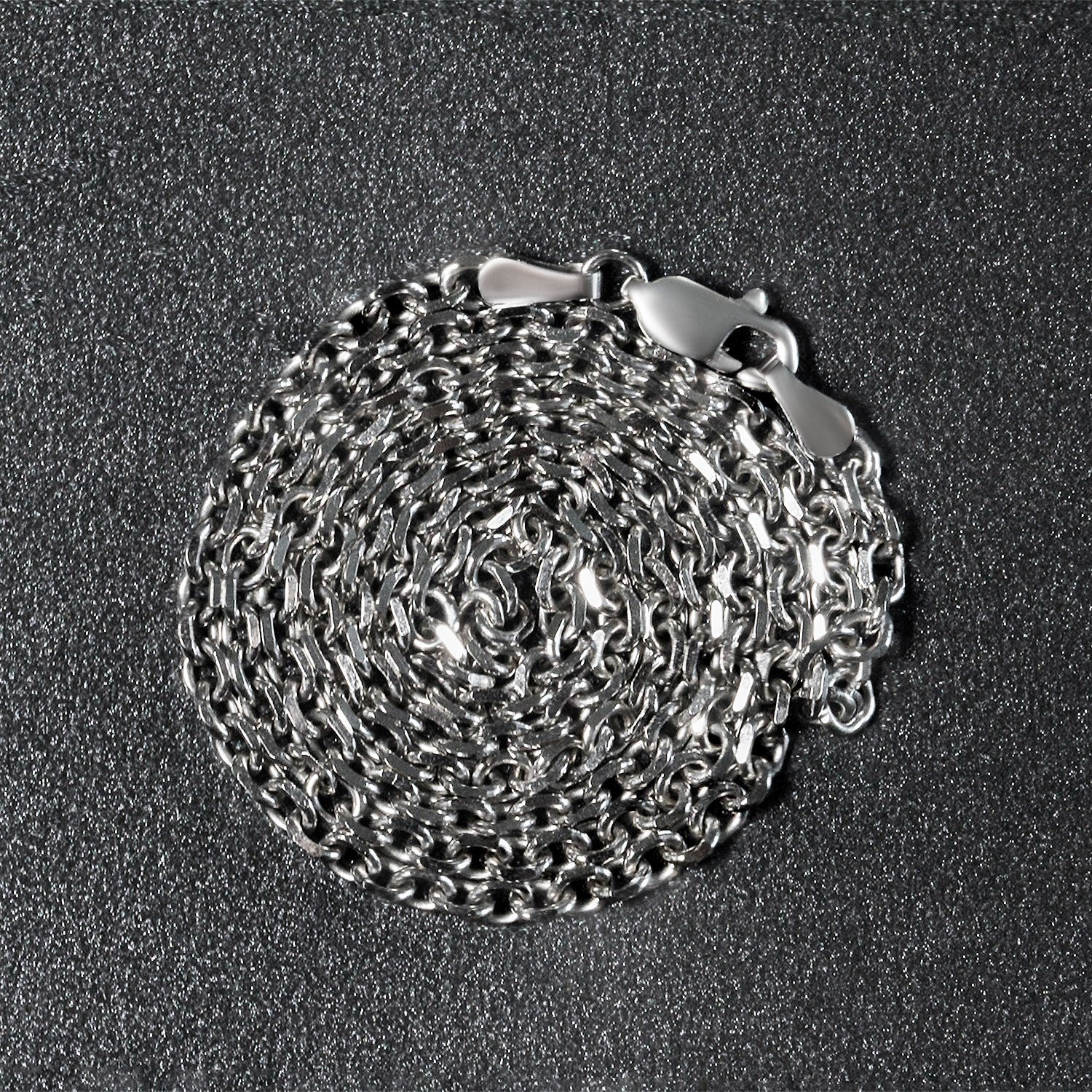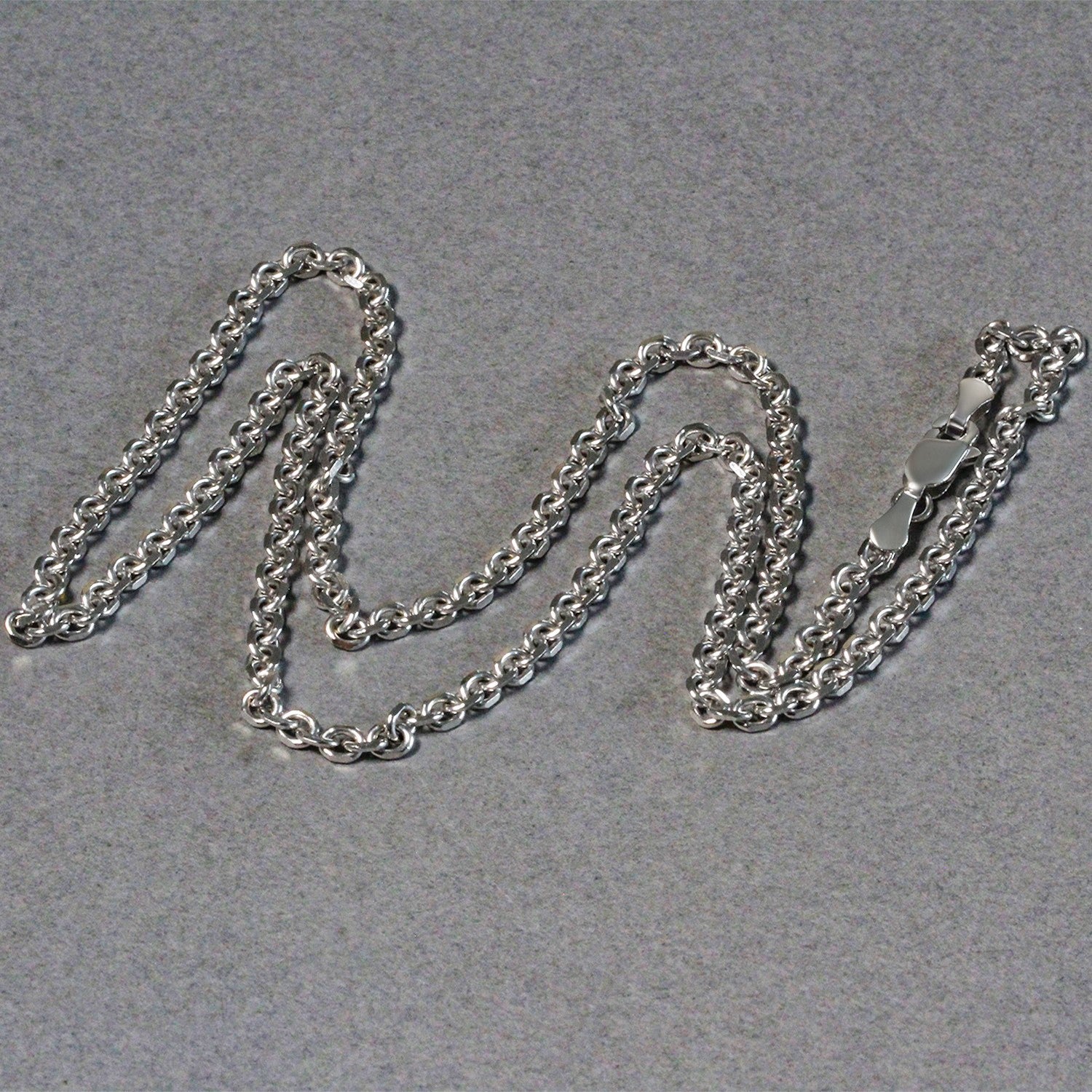 This diamond cut cable link chain comes in 14k white gold and has a width of 2.90 millimeters.
