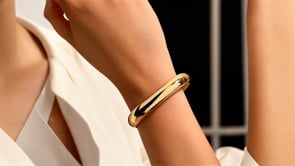 A classic high polish bangle crafted in 14k yellow gold with a hidden clasp.