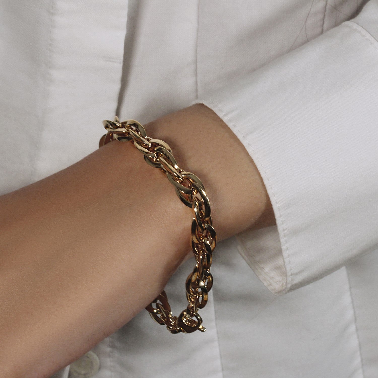 Double Oval Link Chain Bracelet in 14k Yellow Gold